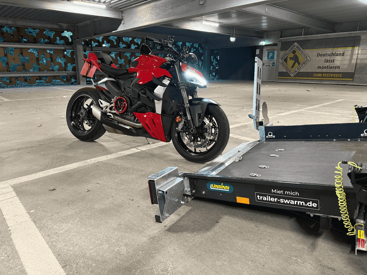 Ob du einen Motorradanhänger leihen, unseren Verleih für Motorradanhänger nutzen oder eine flexible Vermietung suchst – bei Trailer Swarm buchst du in 2 Minuten online und holst 24/7 kontaktlos ab.